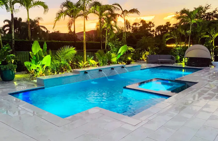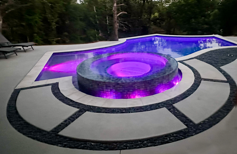 • SpasGunite spa designs, including elevated, interior, and rimflow styles.